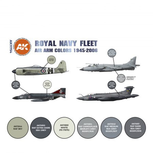 AK Interactive Acrylic 3rd Gen Air RN Fleet Air Arm Aircraft Colors 1945-2010 Paint Set 11754