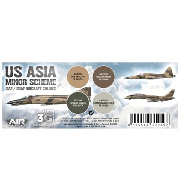 AK Interactive Acrylic 3rd Gen Air US Asia Minor Scheme IIAF/IRIAF Aircraft Paint Set 11751