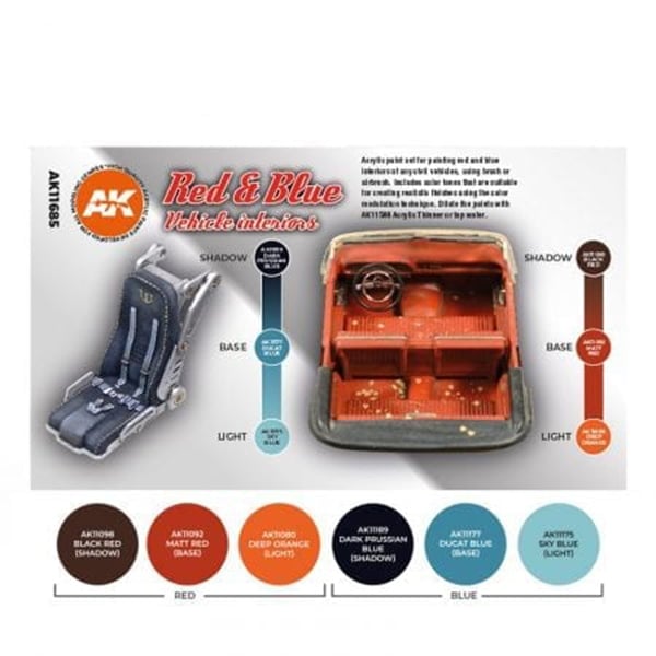 AK Interactive Acrylic 3rd Gen Red and Blue Vehicle Interiors Paint Set 11685