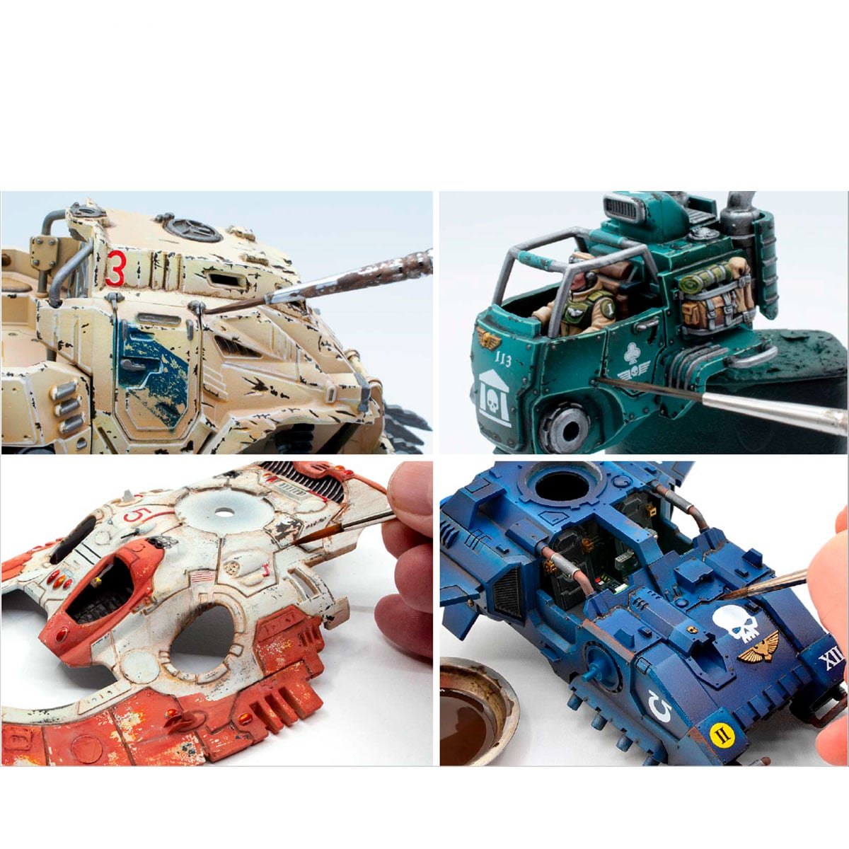These techniques for defining models and figures are easier and more effective than thinned acrylic paints, especially on large surfaces, as they dry too quickly, can leave the dreaded rims and flow less in difficult areas due to the surface tension of the water.