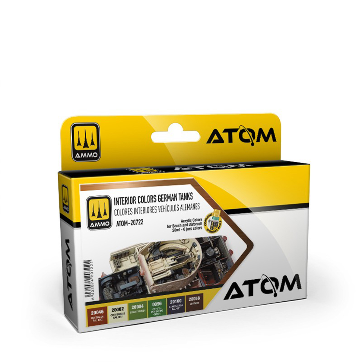 ATOM acrylic paint set with the colours specifically for painting the interiors of German vehicles from World War II. This set solves the issues of choosing the right colours for our models, saving valuable time.