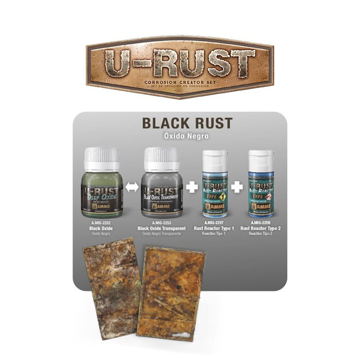 Product formulated to create real black transparent oxide. Ideal for simulating dark and see-trough zones of oxidation. Provided in a convenient 40 ml (1.35 fl oz) container. Compatible with the entire U-Rust range.