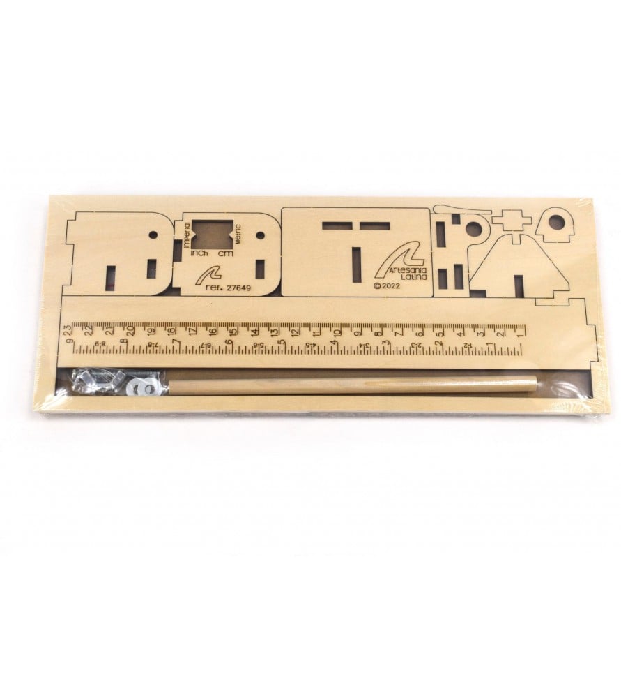 It is adjustable in height and includes measurements in both metric and imperial systems -up to 23 centimeters or 9 inches-. It is made with parts of plywood cut by laser for its optimal assembly -it requires its construction- and it holds the pencil with a small wedge.