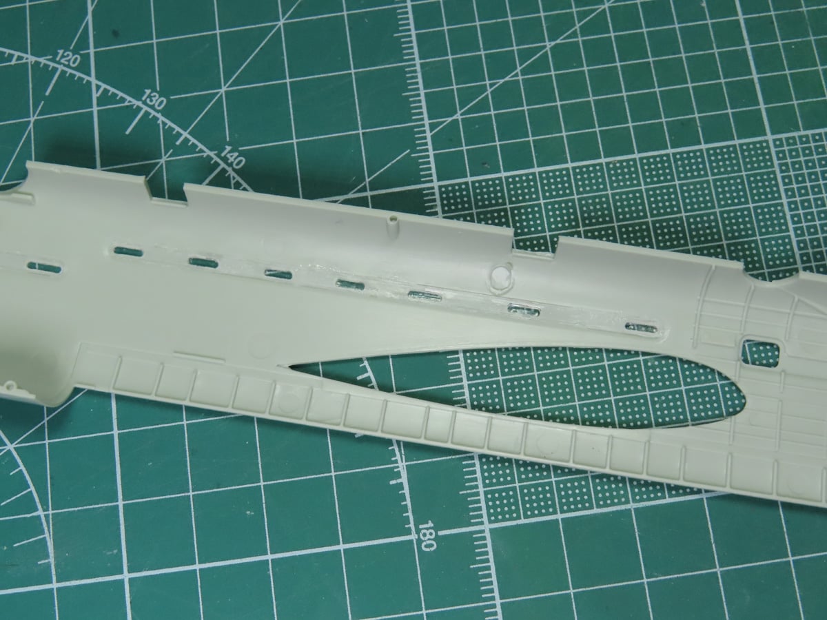 So I began by gluing in all of the window sections with Mr Cement S, and I pushed the windows as flush with the fuselage as possible.