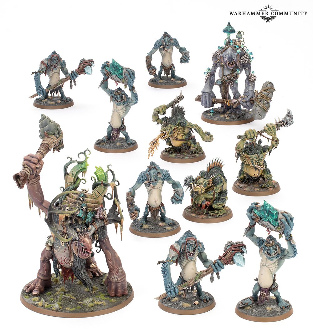 The Gloomspite Gitz kick things off in the Mortal Realms with a thundering troupe of troggoths, led by Trugg, the Troggoth King. His royal entourage consists of one Dankhold Troggoth – which can be assembled as a Troggboss instead – three Fellwater Troggoths and six Rockgut Troggoths, all of which are extremely durable and terrifying to face in combat.