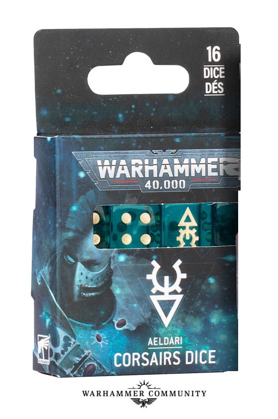 - Each die features the merciless Aeldari Corsairs icon on the ‘6’ face