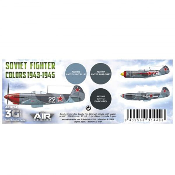 AK Interactive Acrylic 3rd Gen Air Soviet Fighter Colors 1943-1945 Paint Set 11742