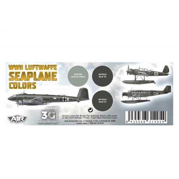 AK Interactive Acrylic 3rd Gen Air WWII Luftwaffe Seaplane Colors Paint Set 11721