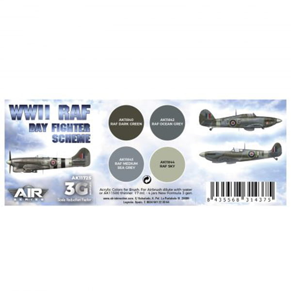 AK Interactive Acrylic 3rd Gen Air WWII RAF Day Fighter Scheme Paint Set 11725