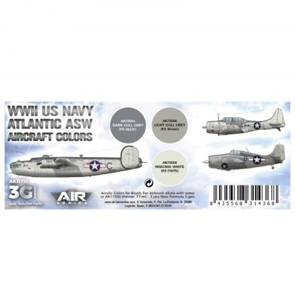 AK Interactive Acrylic 3rd Gen Air WWII US Navy ASW Aircraft Colors Paint Set 11731