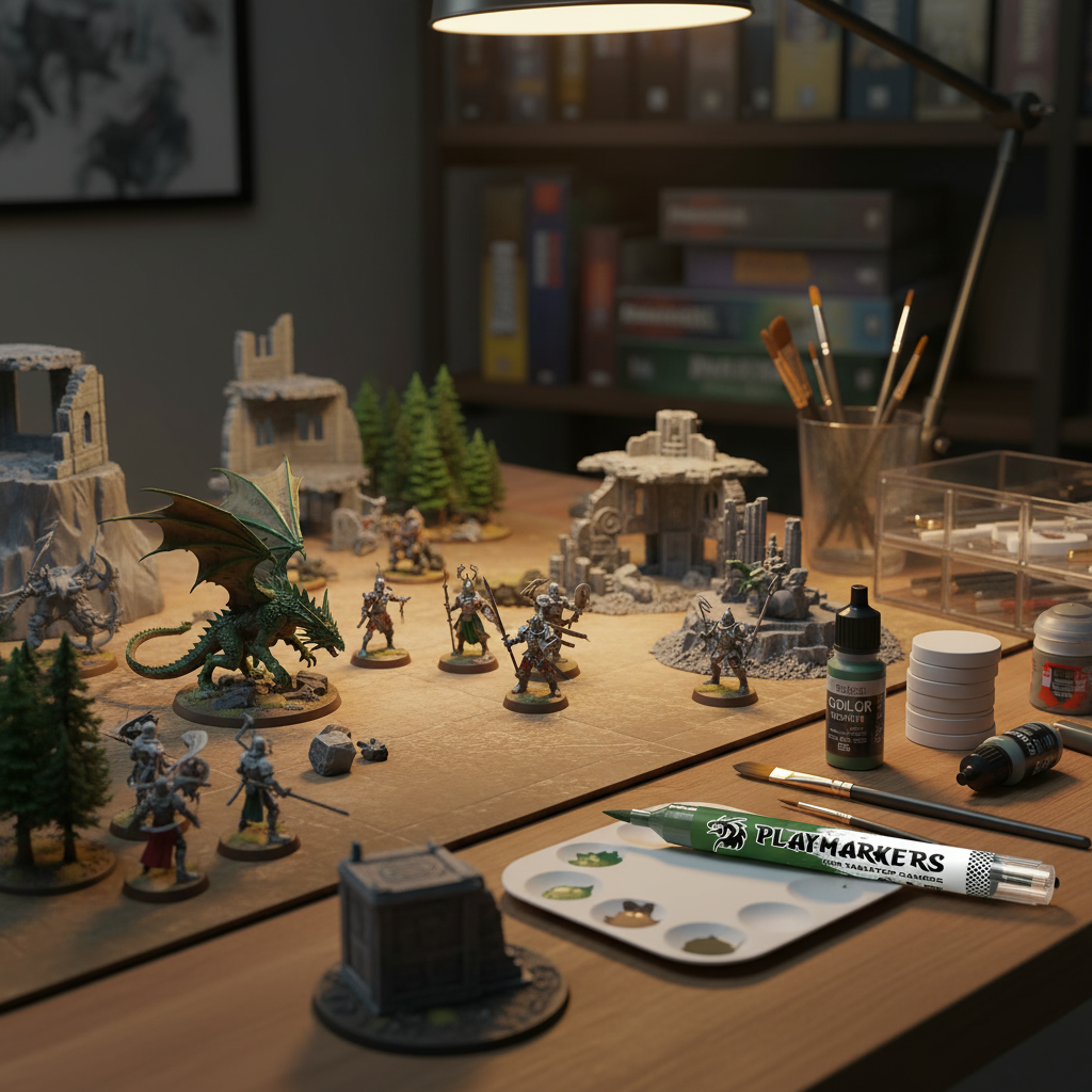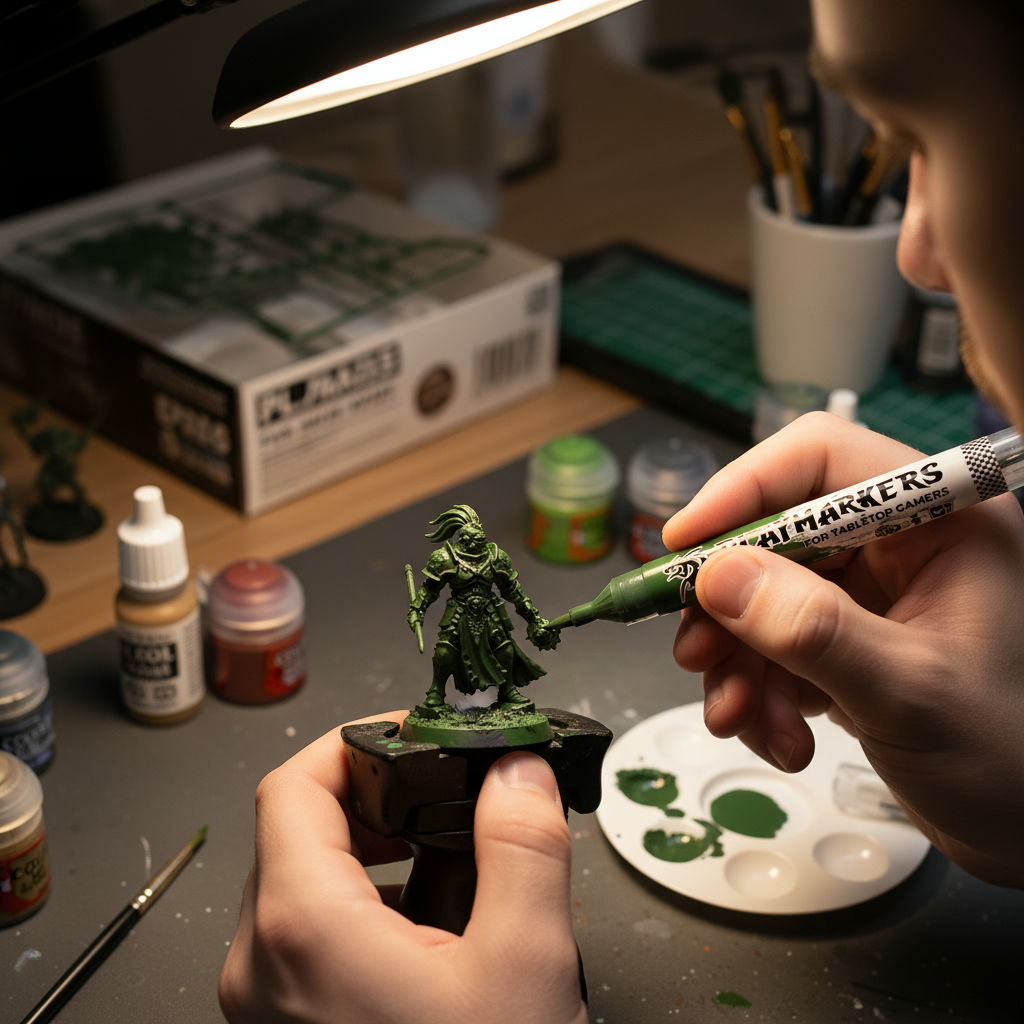 A Playmarker is a marker that contains high-quality acrylic paint and has a brush tip as part of its design, making the painting process as easy as uncapping and applying the colors you choose to decorate your miniature.