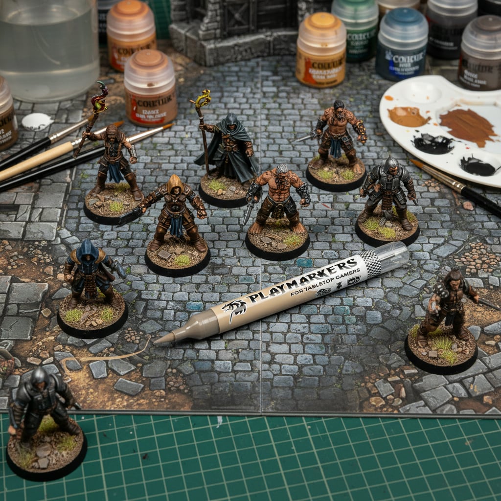 A Playmarker is a marker that contains high-quality acrylic paint and has a brush tip as part of its design, making the painting process as easy as uncapping and applying the colors you choose to decorate your miniature.