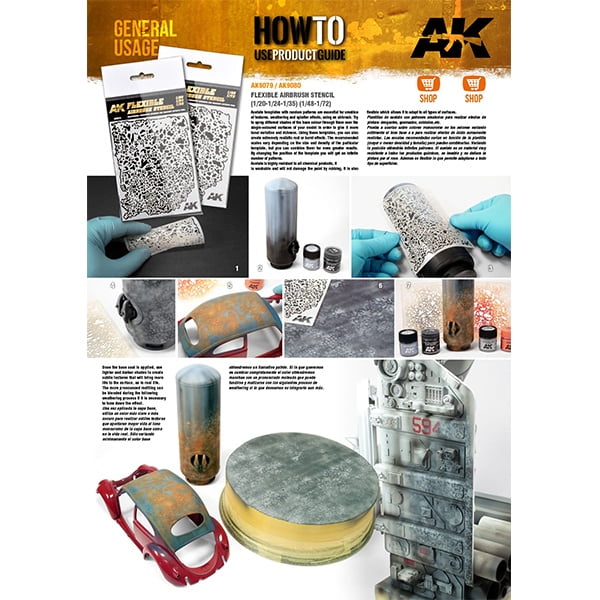 The Airbrush Stencil is flexible, easy to adapt, it doesn’t damage the surface, easy to clean and is versatile enough to be used for any scale.