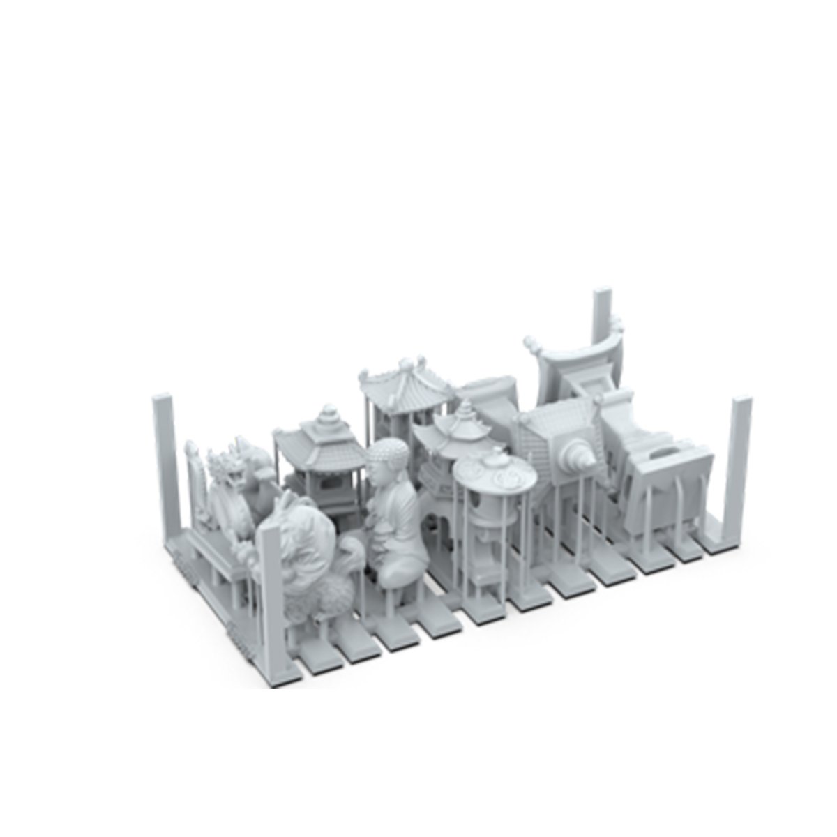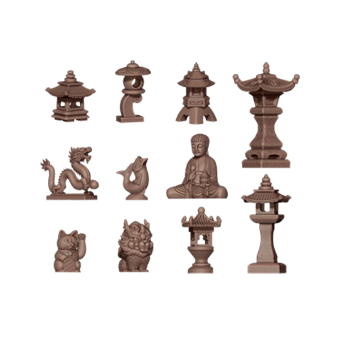 Japanese garden decorations, mainly stone stat-ues, to place on bases or dioramas and achieve an Asian aesthetic in your scenery.