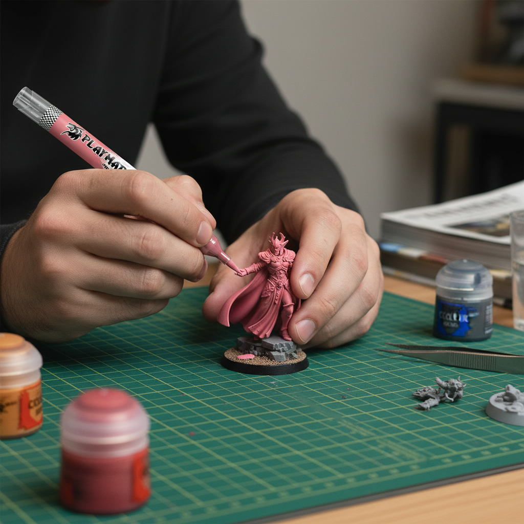 A Playmarker is a marker that contains high-quality acrylic paint and has a brush tip as part of its design, making the painting process as easy as uncapping and applying the colors you choose to decorate your miniature.