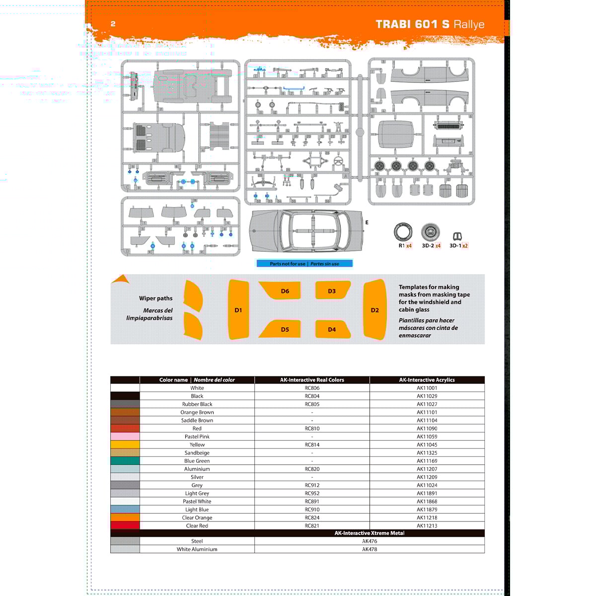 The reference AK35034 represents the most common limousine variant of the Trabant, as built in the second half of the 1980s, which also found use as a rallye car in the competitions organized in East Germany and other Eastern Bloc countries in the aforementioned period. Four marking options are featured in decals included in the kit, allowing for replication of colorful cars which took part in various rallies between 1987 and 1989.