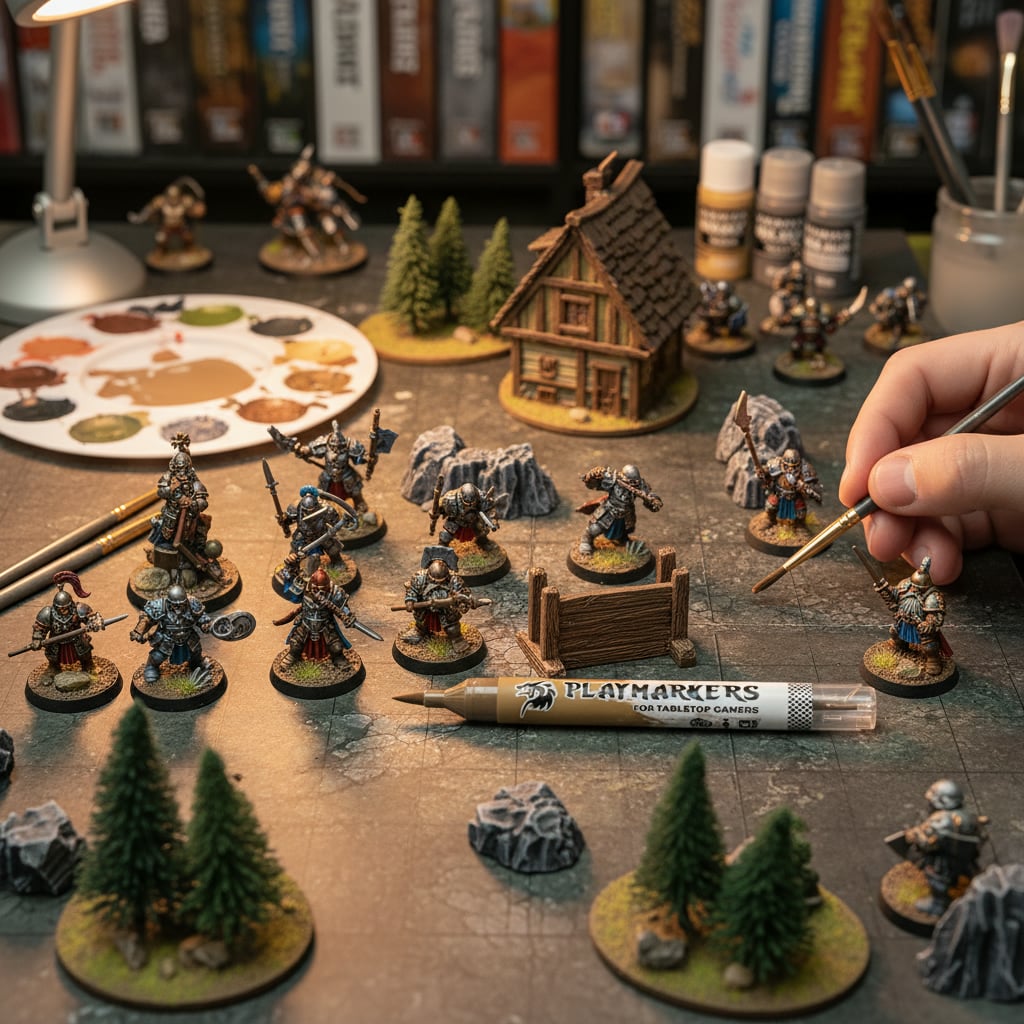 A Playmarker is a marker that contains high-quality acrylic paint and has a brush tip as part of its design, making the painting process as easy as uncapping and applying the colors you choose to decorate your miniature.