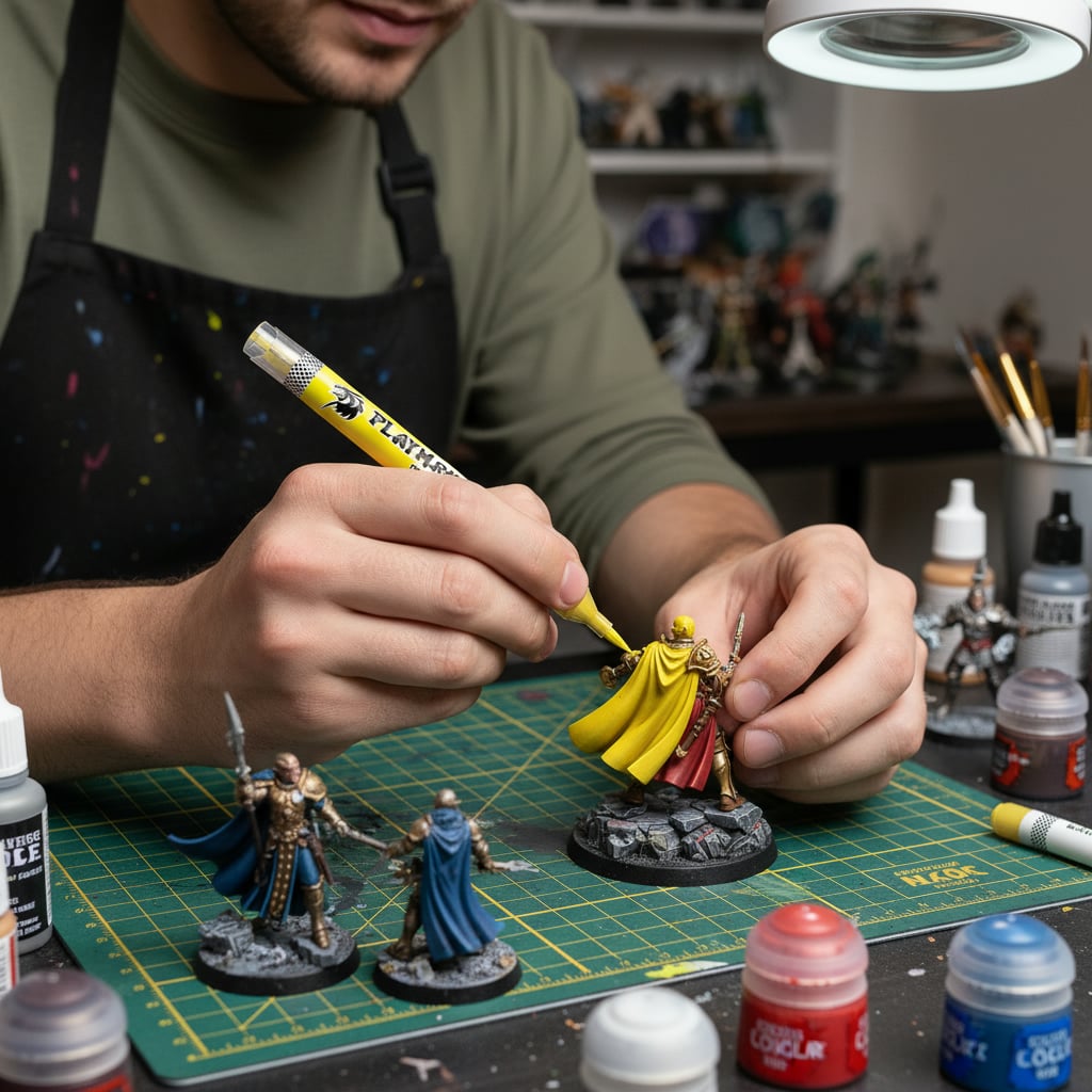 A Playmarker is a marker that contains high-quality acrylic paint and has a brush tip as part of its design, making the painting process as easy as uncapping and applying the colors you choose to decorate your miniature.