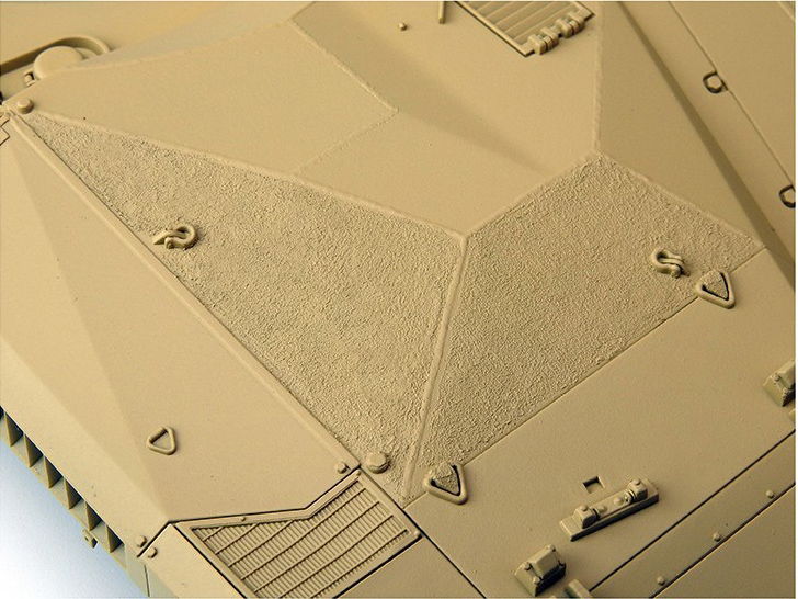 High quality acrylic product to realistically represent non-slip surfaces in 1/35 and larger scales, as well as other rough textures of any surface type. The sand colour will be extremely useful when working on dark-coloured plastic. Apply directly from the container and spread the paste with a brush. For optimal results apply two layers, the second layer perpendicularly to the first, in order to obtain a perfectly uniform texture. This product easily adapts to your needs to create different textures by tapping the surface with a brush, a sponge, by adding water, or by building up the effect in several layers. After drying for 24 hours, this texture remains securely attached to any surface.