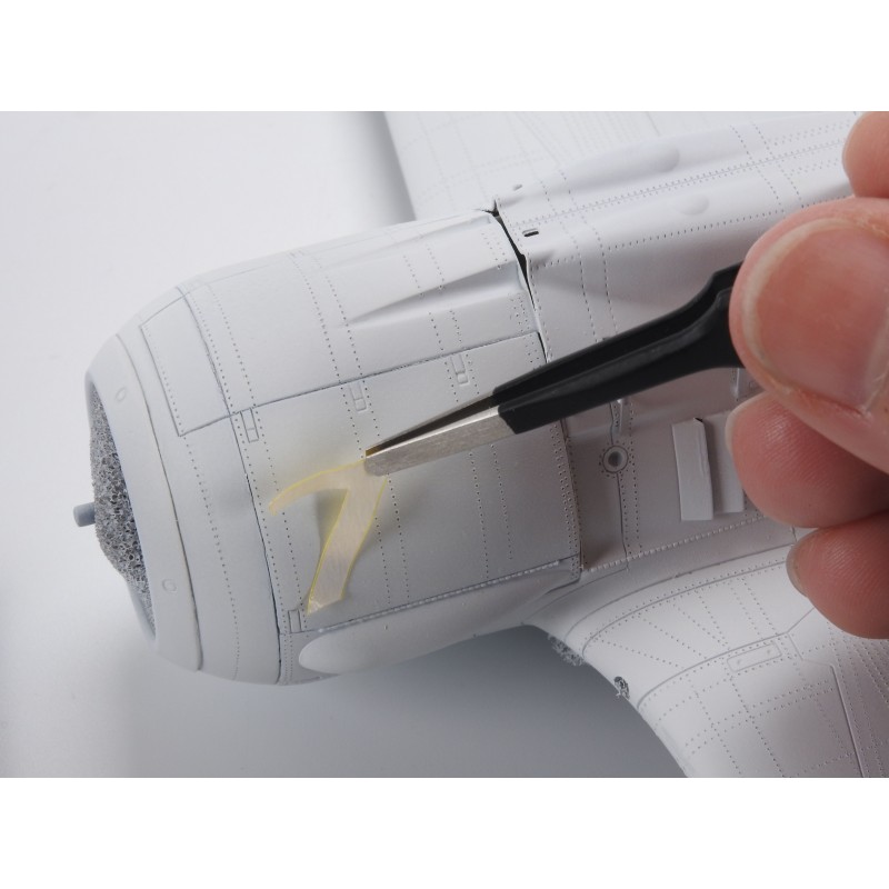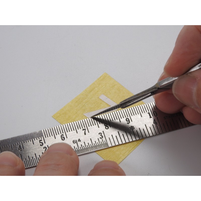 Flexibility allows masking to be used to secure joints while glue cures, and as an edge guide for engraving details on the plastic. This material cuts clean and easily with scissors or a sharp blade, and can even be cut on the model if necessary.