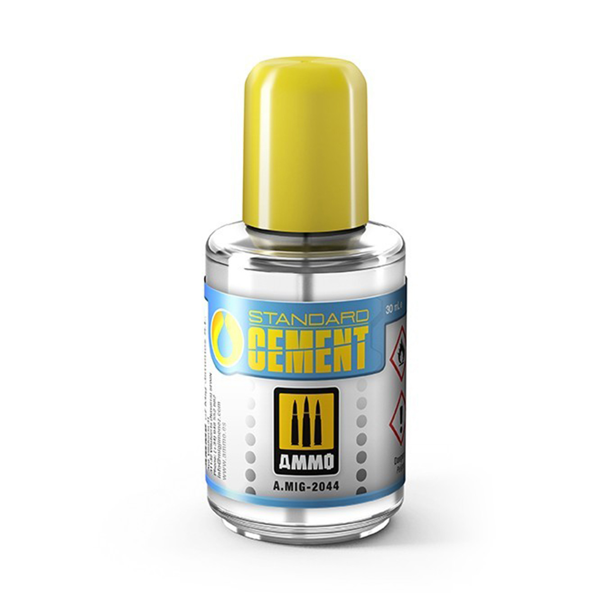 High-strength cement for use in assembling plastic scale models. The consistency lies between that of Extra Thin Cement (A.MIG-2025) and Medium Density Cement (A.MIG-2038)