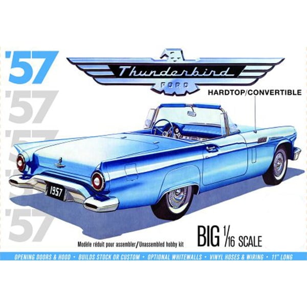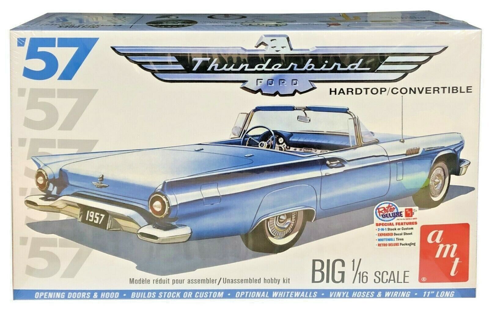 BIG SCALE: AMT’s 1/16 scale 1957 Ford Thunderbird is a great project for the experienced model builder who wants to go big! Add it to your collection today.