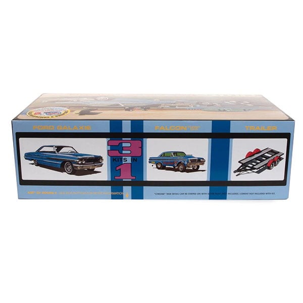 Feature packed: This Retro Deluxe™ combo set is better than the original! It features optional aqua-tinted windows for the Falcon, whitewall-stripe tires for the Galaxie, and an all-new hitch for the Trailer! Additionally, it features an expanded decal sheet with lots of graphics to customize your models!