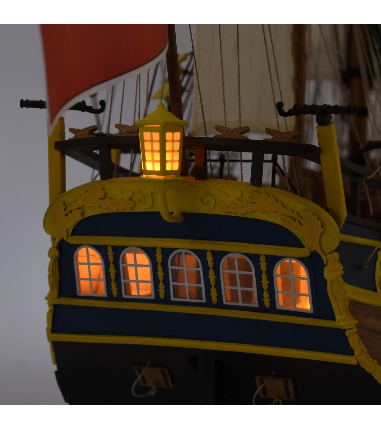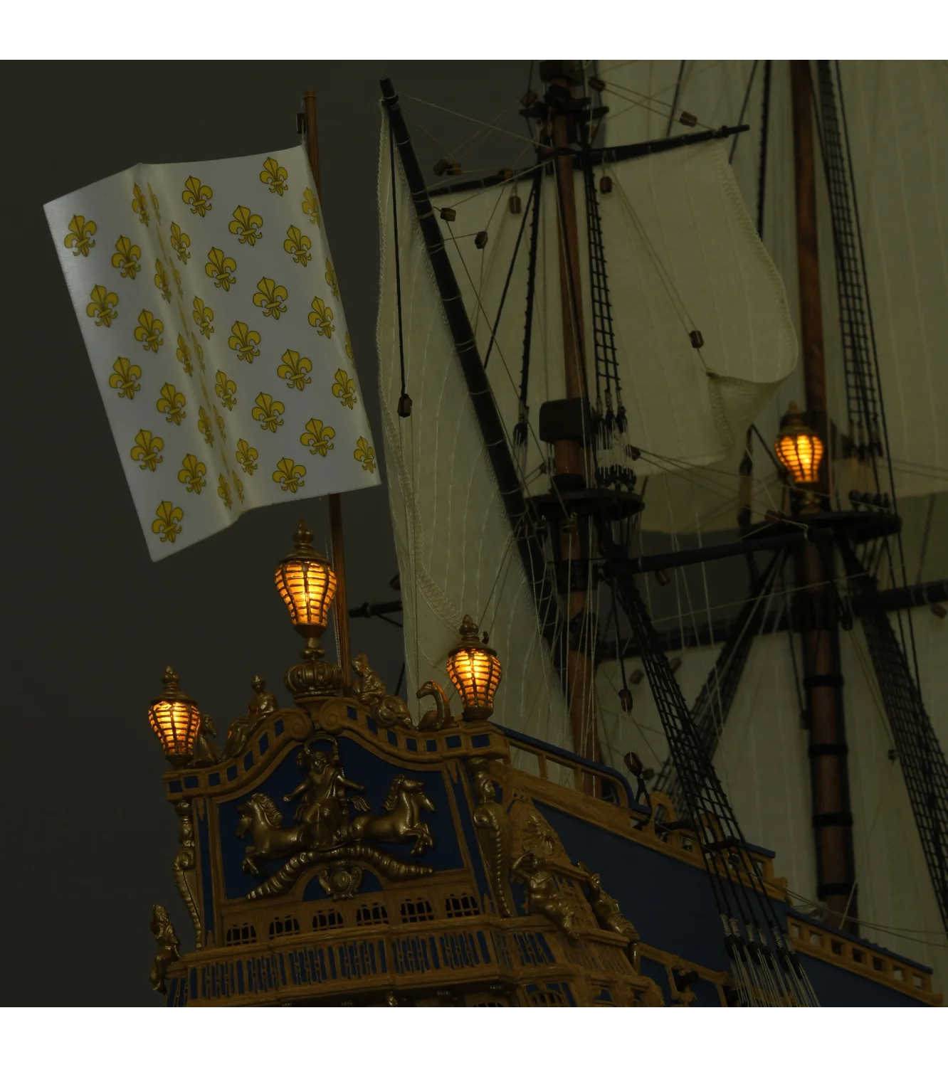 Discover this LED Lightning Set for Scale Models and DIY Projects. Ship models like The King of the Mississippi, Soleil Royal or HMS Endeavour, among others, will get more realism and beauty. The set includes 10 candle-effect LED lights, 4 continuous lighting LED lights, a battery holder for two AAA batteries and another one for a button cell, a switch, 8 meters of red and black cable, half a meter of heat-shrink sleeve and one meter of tin. Can be used working on anothers DIY and craft projects too!