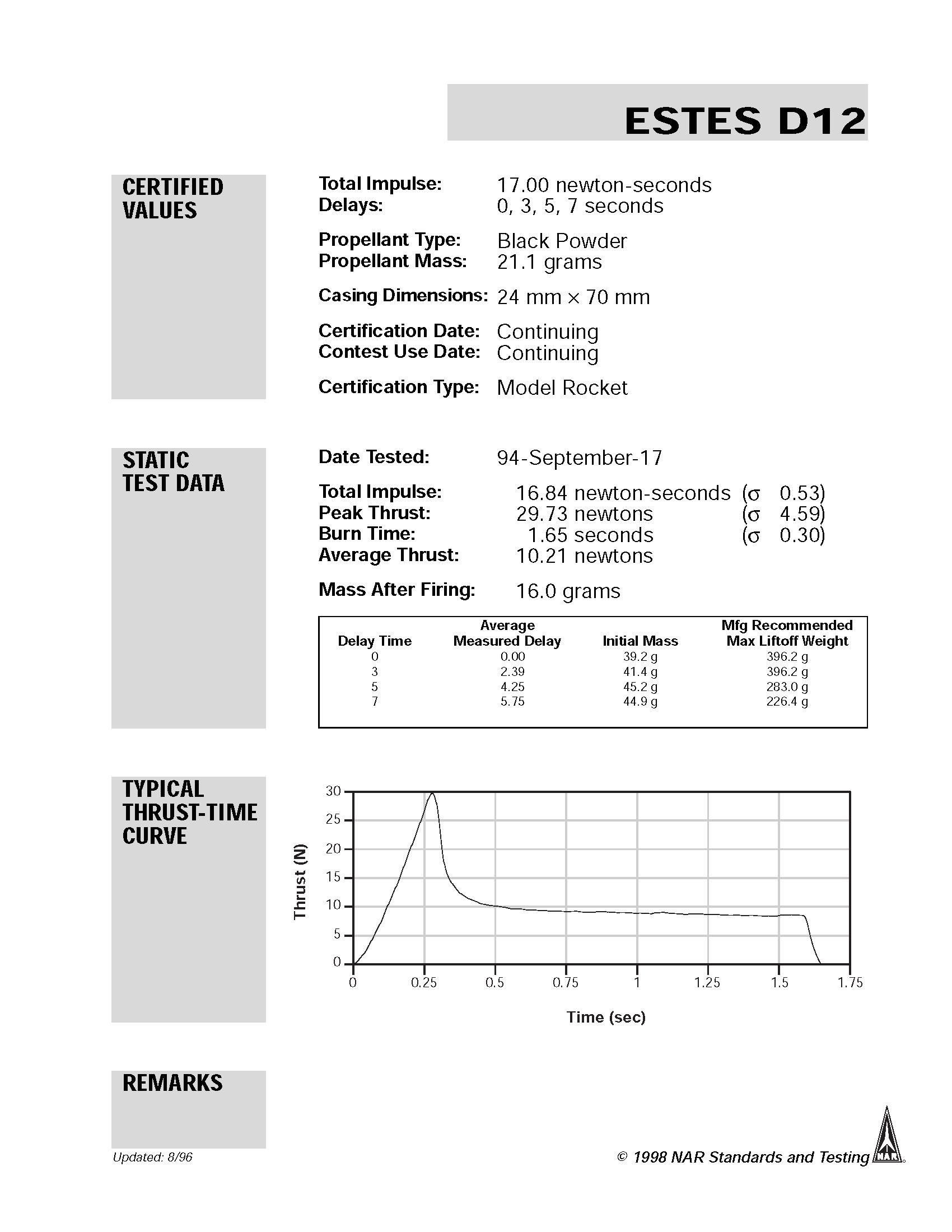 La National Association of Rocketry Engine Certification est jointe dans les images.