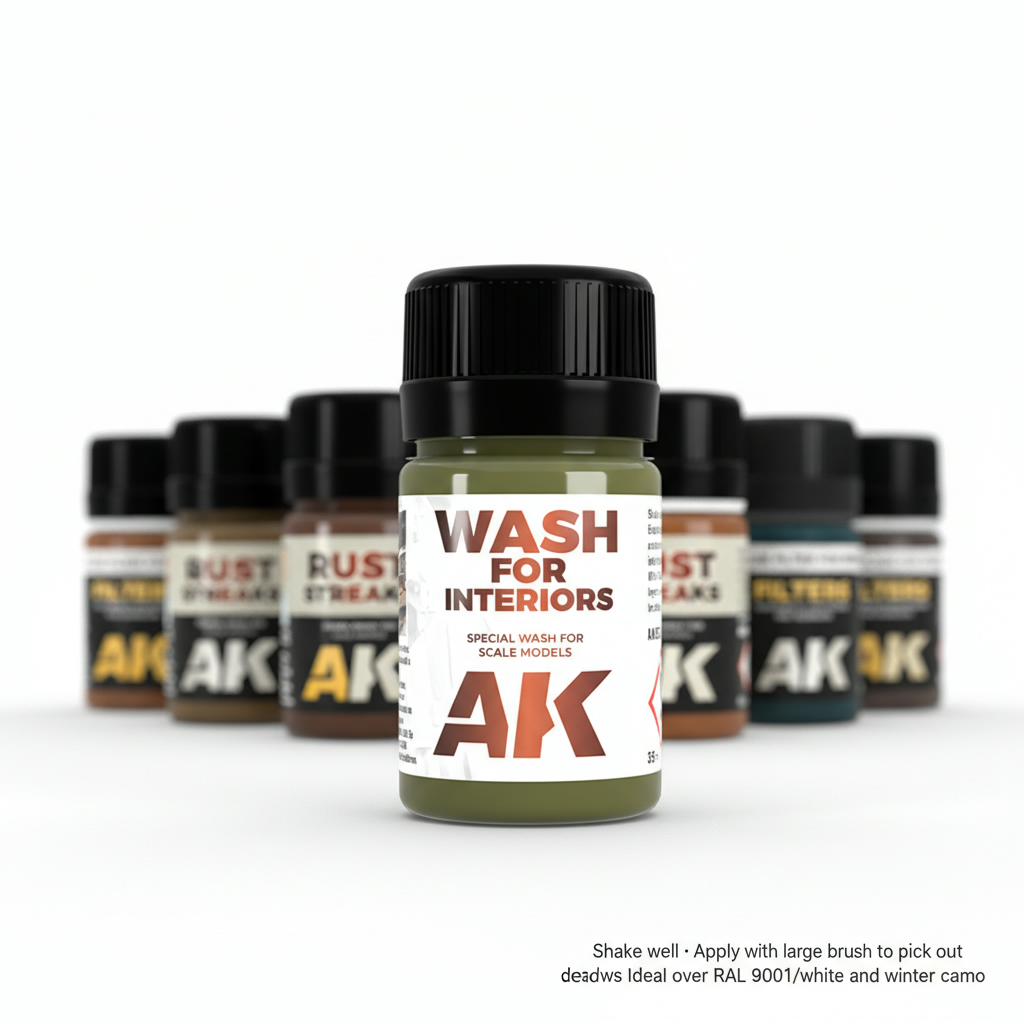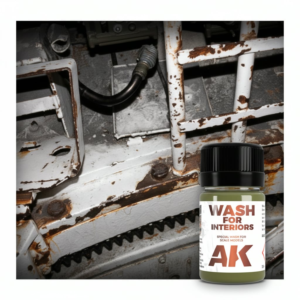 This product allow us bring life to the details of the interior of our tanks. This wash is specially designed to be applied over the light colors of the interiors, such as RAL 9001 Cremeweiss or white. For this reason we can also use it on winter camouflaged vehicles. Ideal wash for creating the accumulation of dirt and grime on details on light colors.