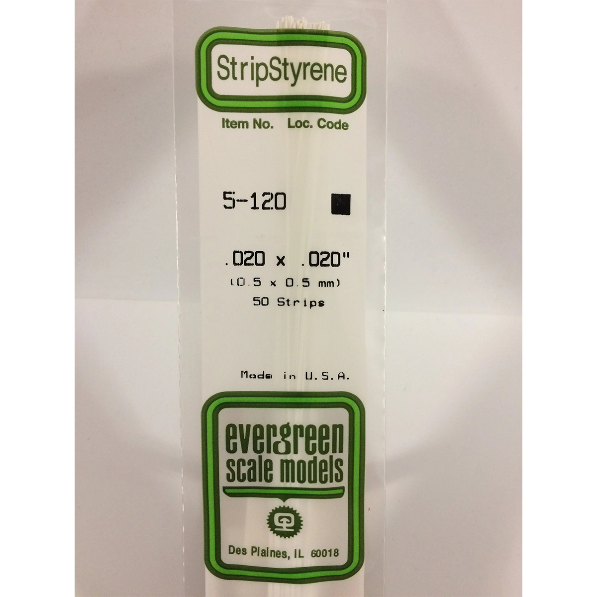 Evergreen .020 x .020 inch Opaque White Polystyrene Strip Bulk Pack of 50 EVE 5120