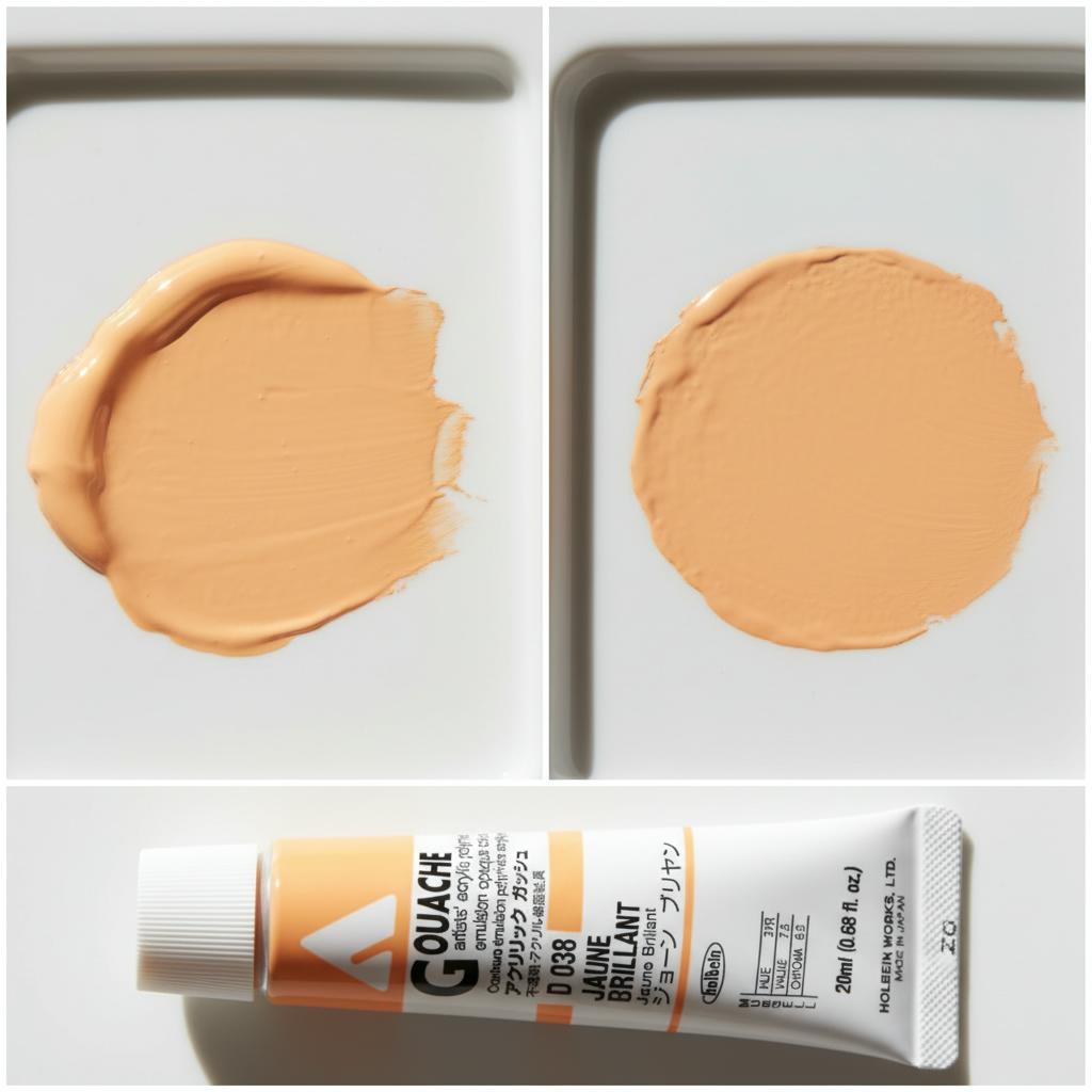Drying to a velvet matte finish; Holbein Acryla Gouache does not shift in color tone from liquid to dry color. What you see wet is what you get once dry.