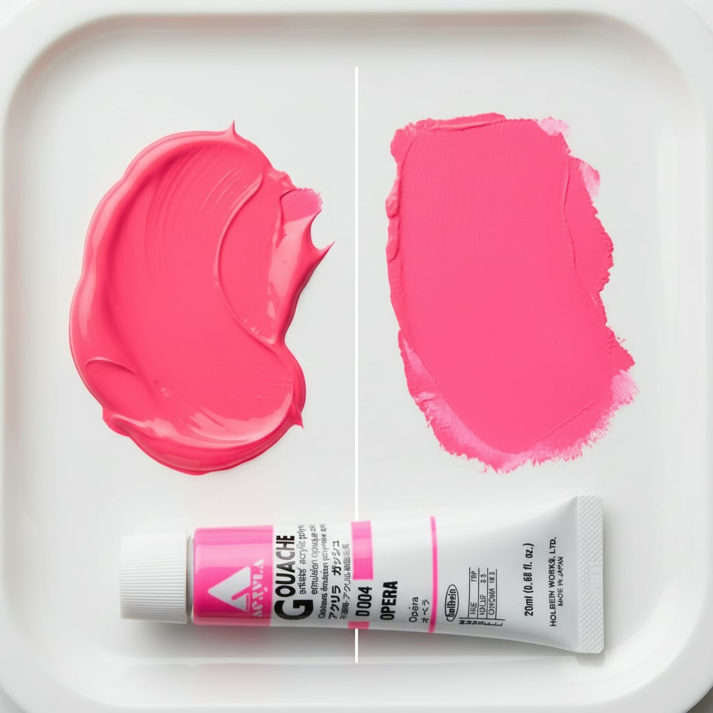 Drying to a velvet matte finish; Holbein Acryla Gouache does not shift in color tone from liquid to dry color. What you see wet is what you get once dry.