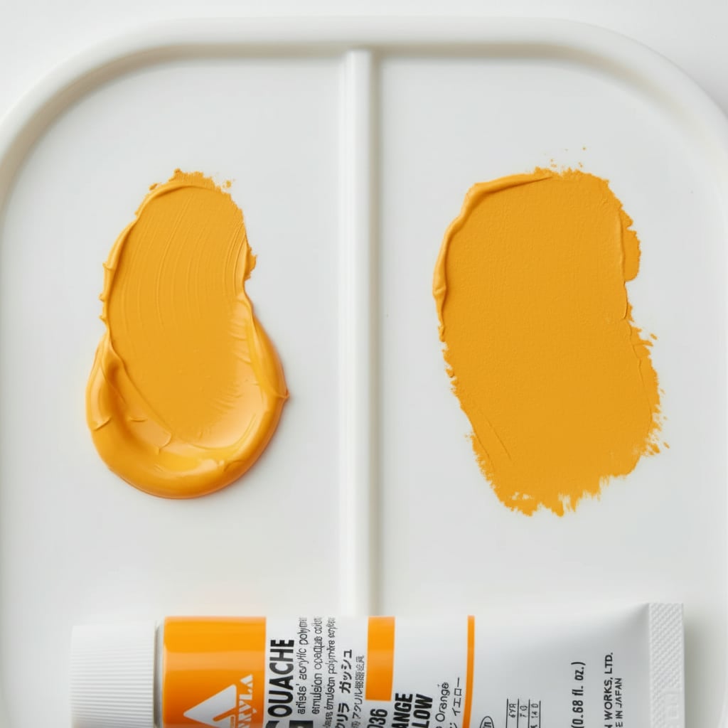 Drying to a velvet matte finish; Holbein Acryla Gouache does not shift in color tone from liquid to dry color. What you see wet is what you get once dry.