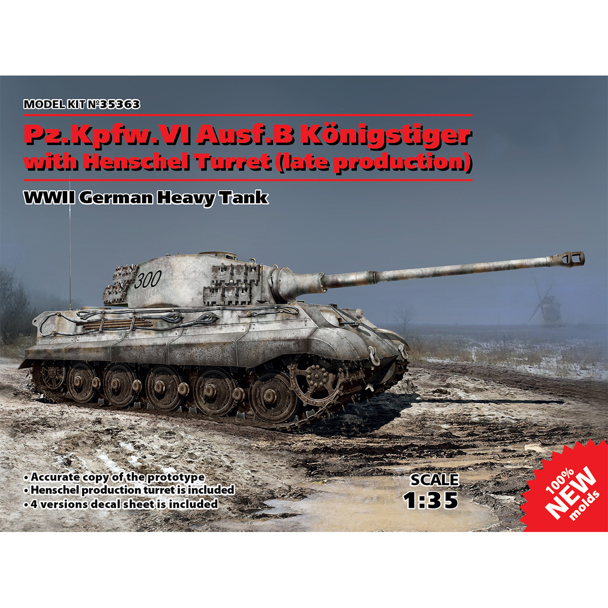 ICM Pz.Kpfw.VI Ausf.B King Tiger with Henschel Turret Late Production WWII German Heavy Tank 1/35 Scale 35363