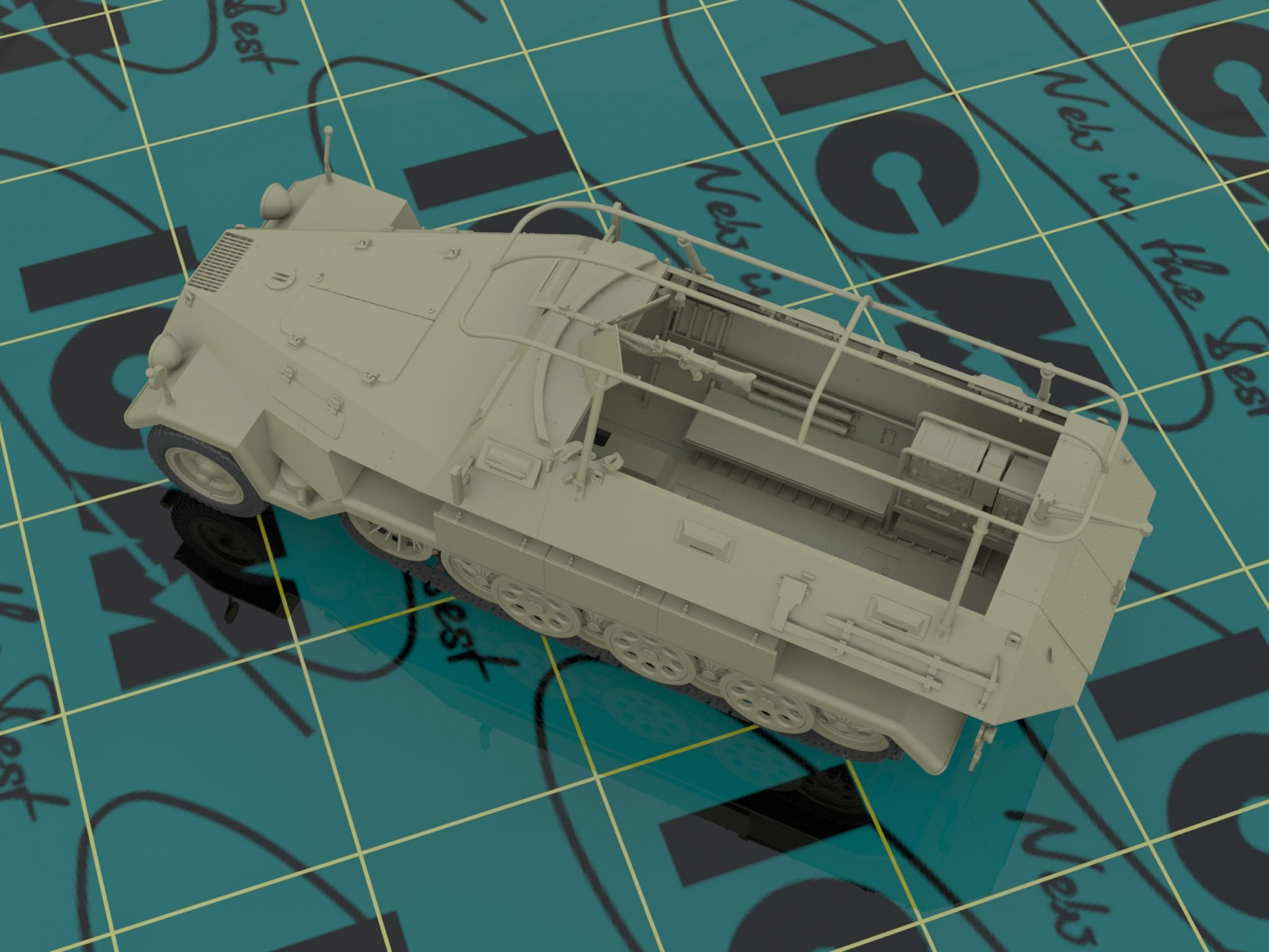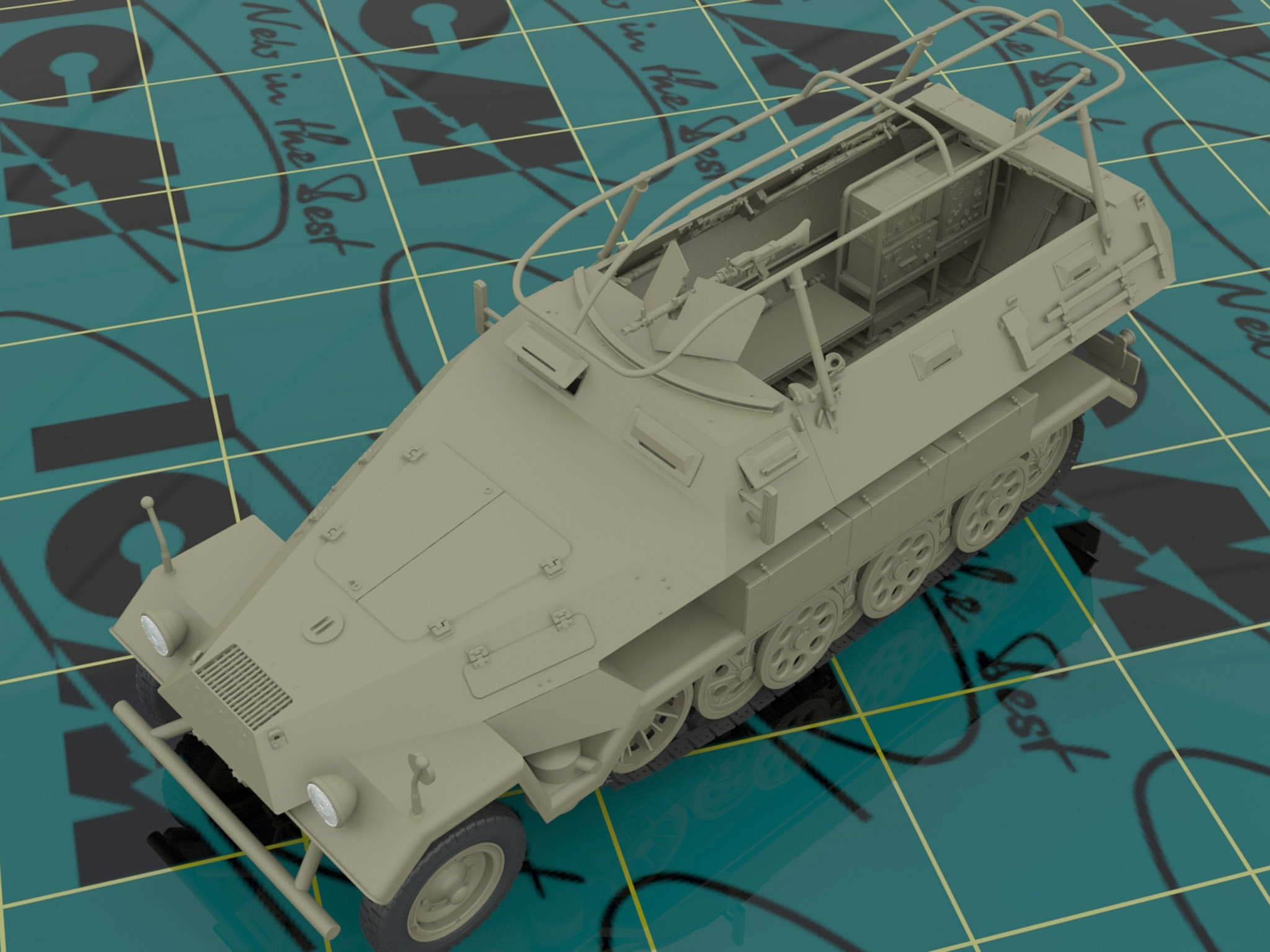 The set includes 302 parts for assembly of Sd.Kfz.251/6 Ausf.A armoured command vehicle model kit, and 32 parts for assembly of four figures of German сommand vehicle crew of 1939-1942 period.