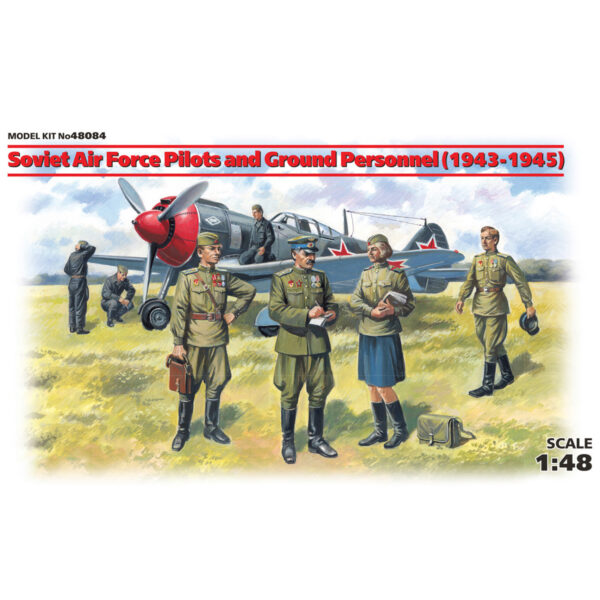 ICM Soviet Air Force Pilots and Ground Personnel 1943-1945 7 Figures – Staff Officer 2 Pilots 3 Mechanics Military Servicewomen 1/48 Scale 48084