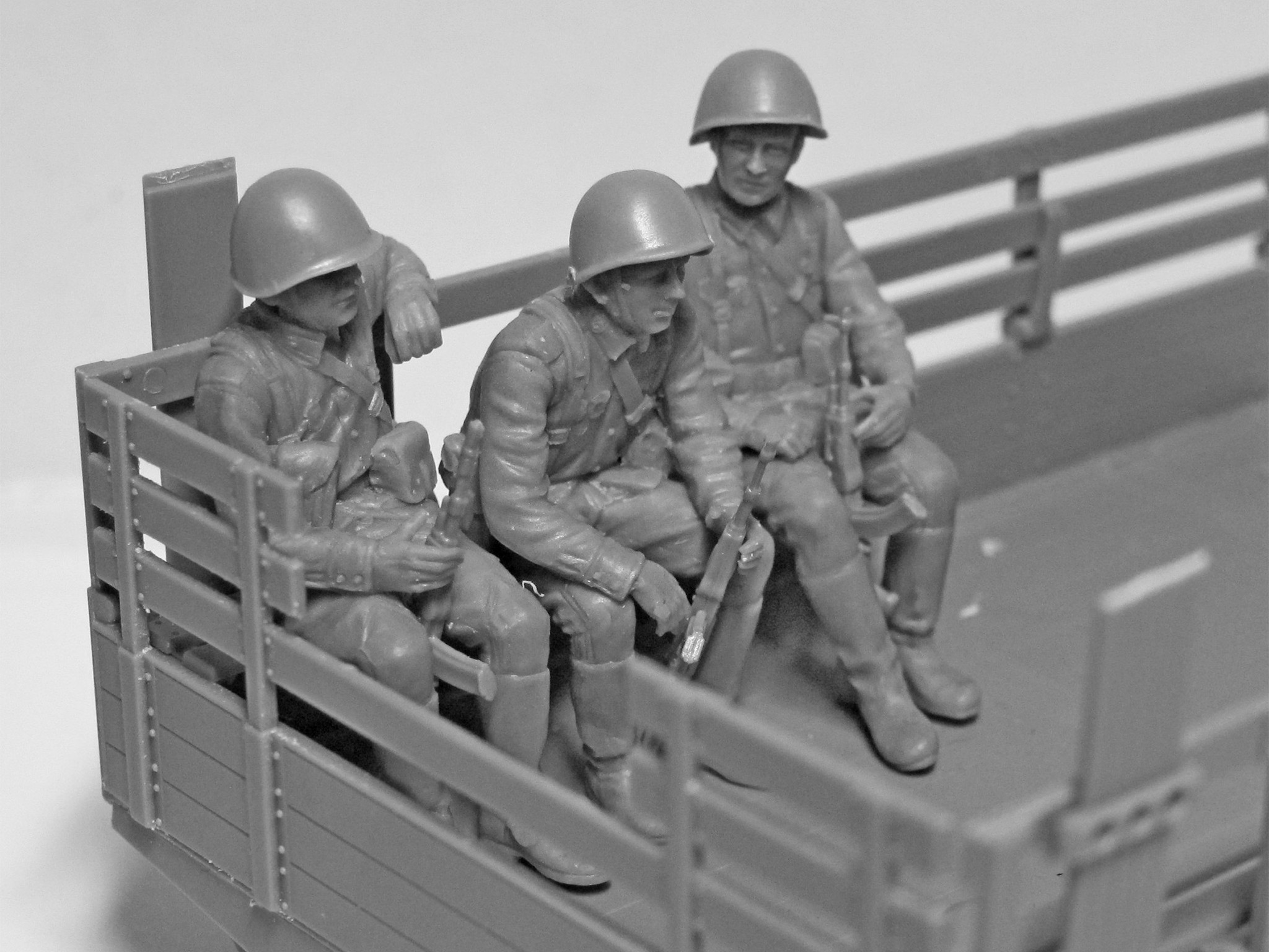 The set includes 56 parts for assembly 5 figures of Soviet Army Servicemen of 1979-1991 period.