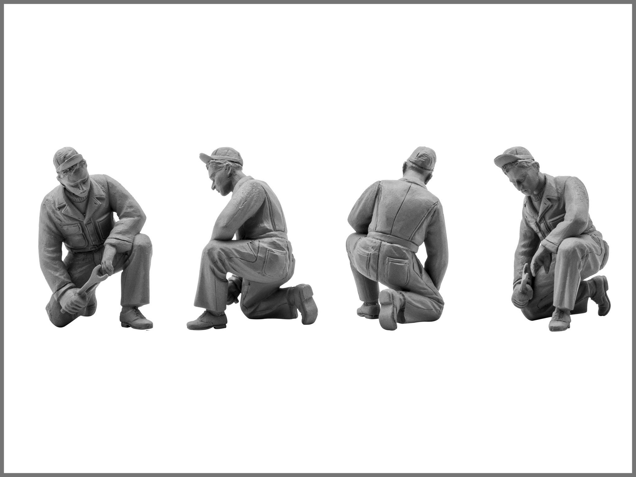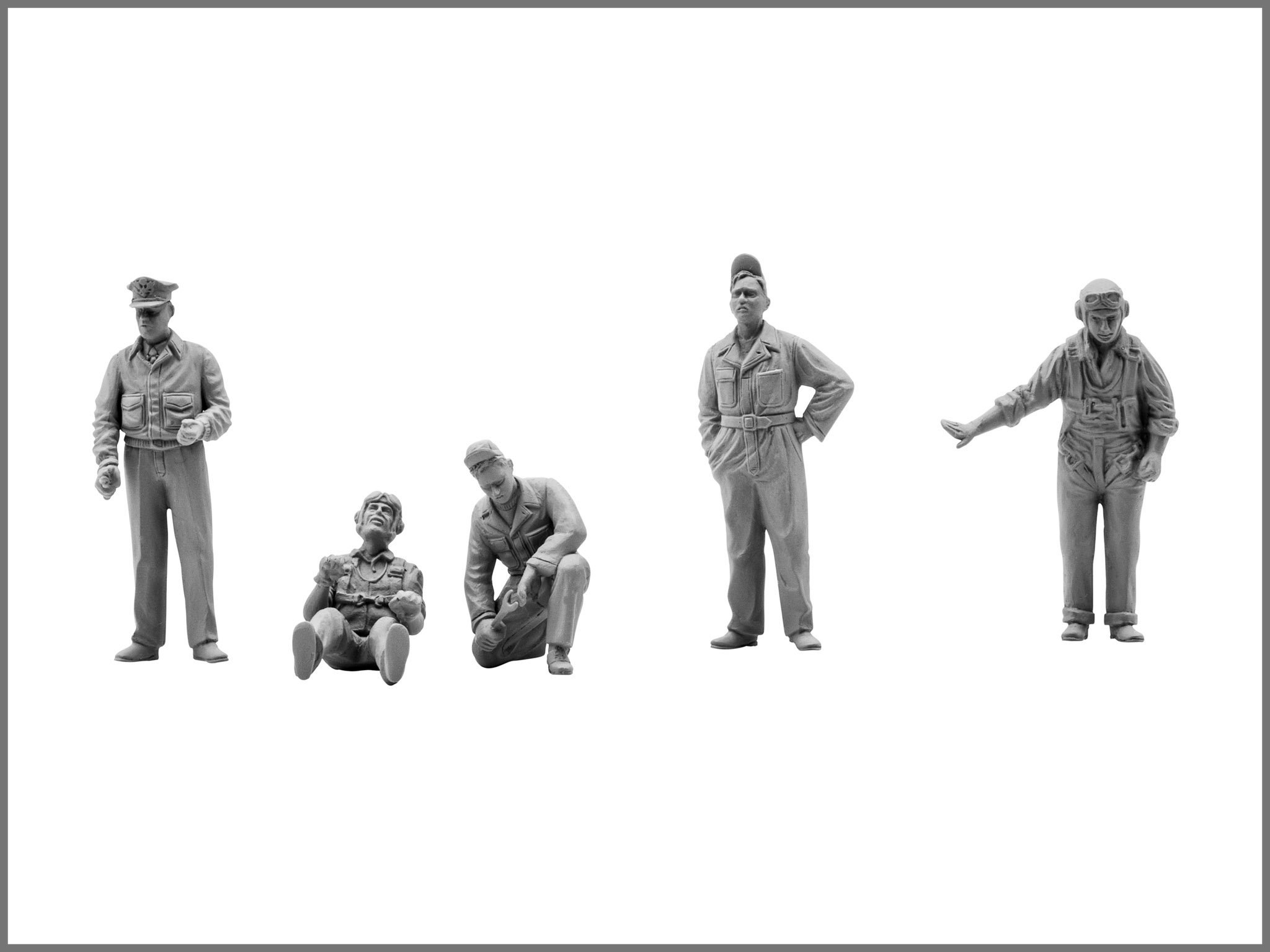 The kit includes five figures –three pilots and two mechanics of WWII US Army Air Force.