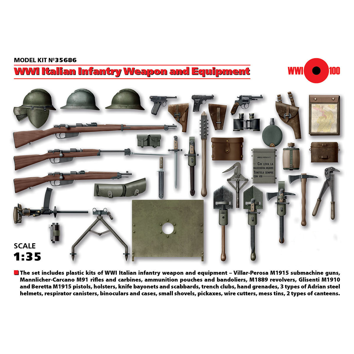 ICM WWI Italian Infantry Weapon and Equipment 1/35 Scale 35686