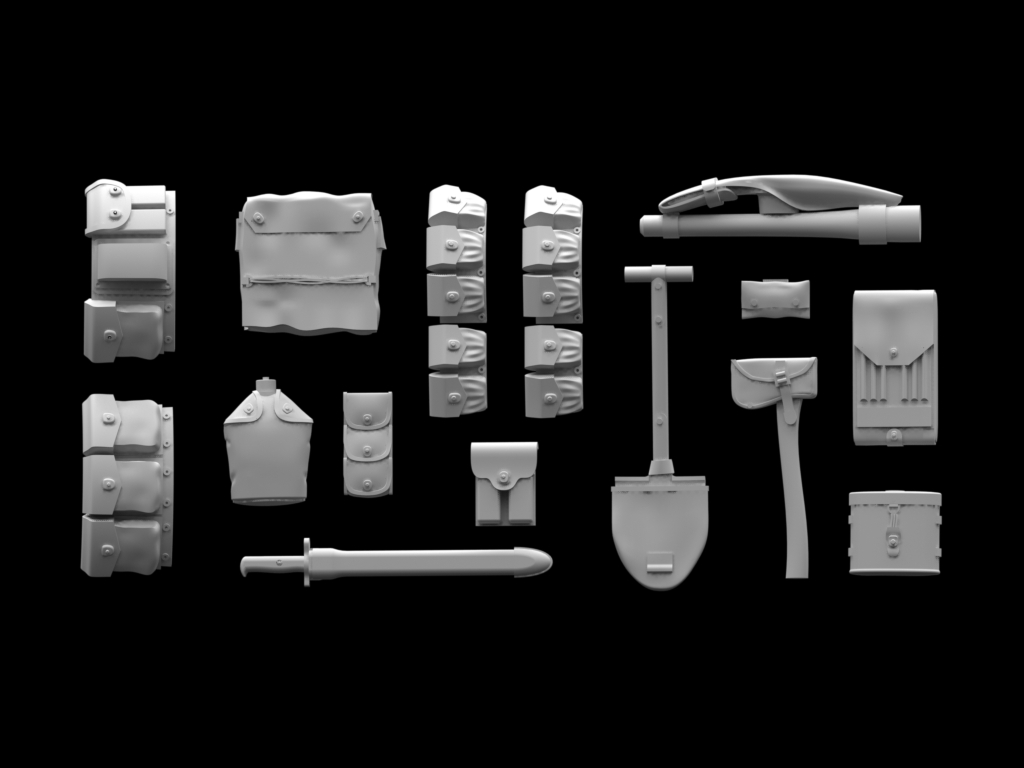 The set includes 208 parts for assembly WWI US Infantry Weapon and Equipment.