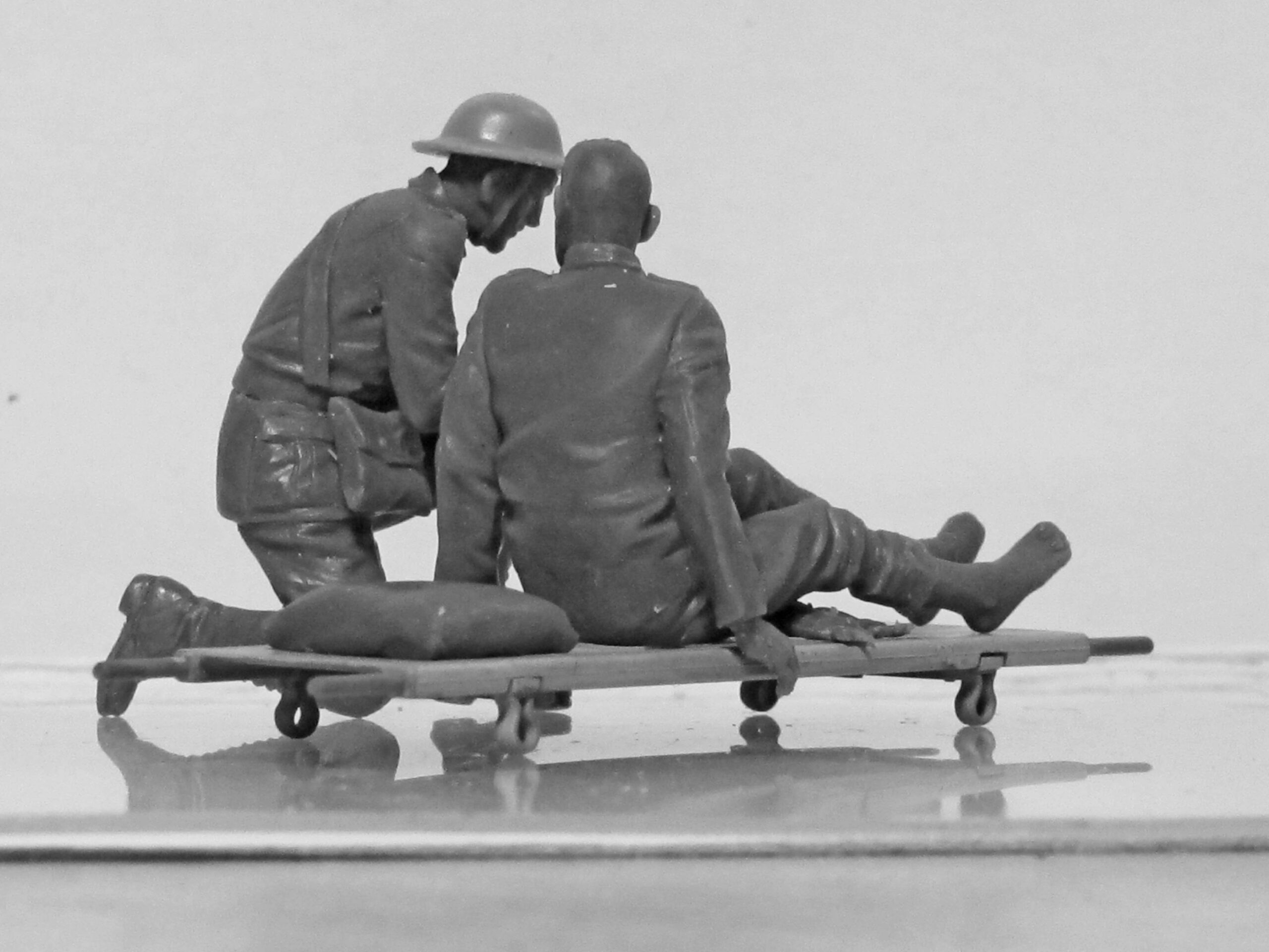The set includes 38 parts for assembly 4 figures of WWI US Medical Personnel kit.