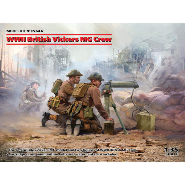 ICM WWII British Vickers MG Crew Vickers MG and 2 Figures 1/35 Scale 35646