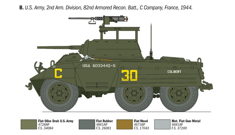 At the beginning of World War II, the U.S. Army had lightweight and lightly armed vehicles, called “scout cars,” for advanced reconnaissance activities. Developed during the war, the M-8 Greyhound armored car, characterized by increased protection and heavier armament, represented a turning point for the American army. The vehicle provided greater operational flexibility and could be more effectively used to support ground troops thanks to the 37mm cannon installed in the turret. First used on the Italian front, from Monte Cassino to Anzio, it later participated in the D-Day operations in June 1944. Although the terrain in Normandy proved difficult and challenging during the initial stages of the operation, the M-8 was highly appreciated for its speed and versatility. It was utilized not only by the U.S. Army but also by numerous Allied countries.