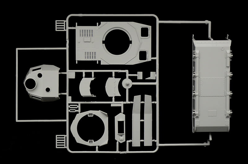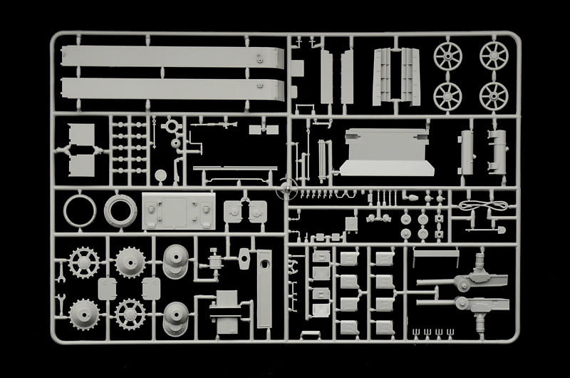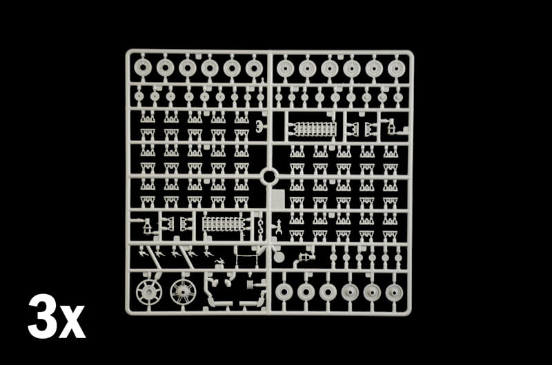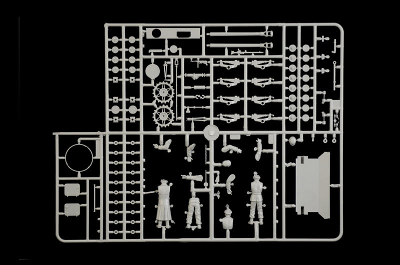 Metal gun barrel – gluable rubber or link-and-length tracks – decals for 5 versions – colors instructions sheet 3 figure included