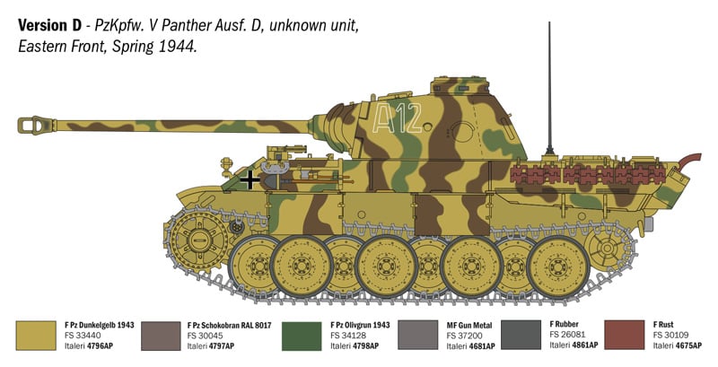 The Panzerkampfwagen V “Panther” was undoubtedly one of the most famous tanks of the Second World War. It was developed as a direct response to the Soviet T-34 and KV-1 tanks, which outclassed the now outdated Panzer III and Panzer IV on the Eastern Front in terms of performance and firepower. Powered by a 700-horsepower Maybach V-12 engine, it was armed with the highly effective high-velocity 75 mm KwK 42 gun, particularly suited for anti-tank use. Thanks to a well-designed layout that optimized protection—through the adoption of sloped frontal armor—mobility, speed, and firepower, the Panther can be considered one of the best tanks of the Second World War. It was employed on all major fronts, from Italy to France to the Eastern Front. The “D” version was the first to enter operational service on the battlefield.