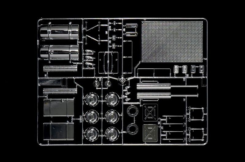 Our accessory set 764 gives you the possibility of beefing up your truck kits with additional exhaust pipes, chrome-plated parts, with bull bars, spoilers, name plates, additional head lights and puppets as well as tools and other items. Our kit also includes two figures to make your truck complete. A big decal with many symbols and color stripes enables you to decorate your trucks in the way you see them on the road today.