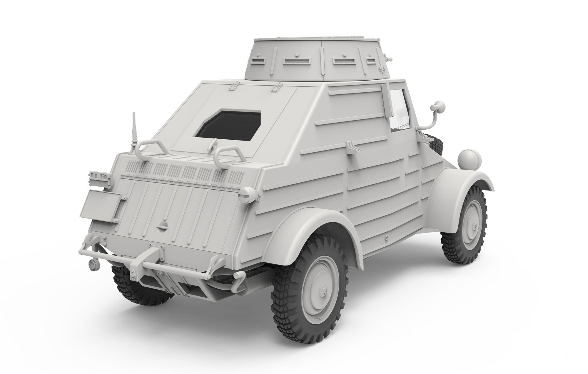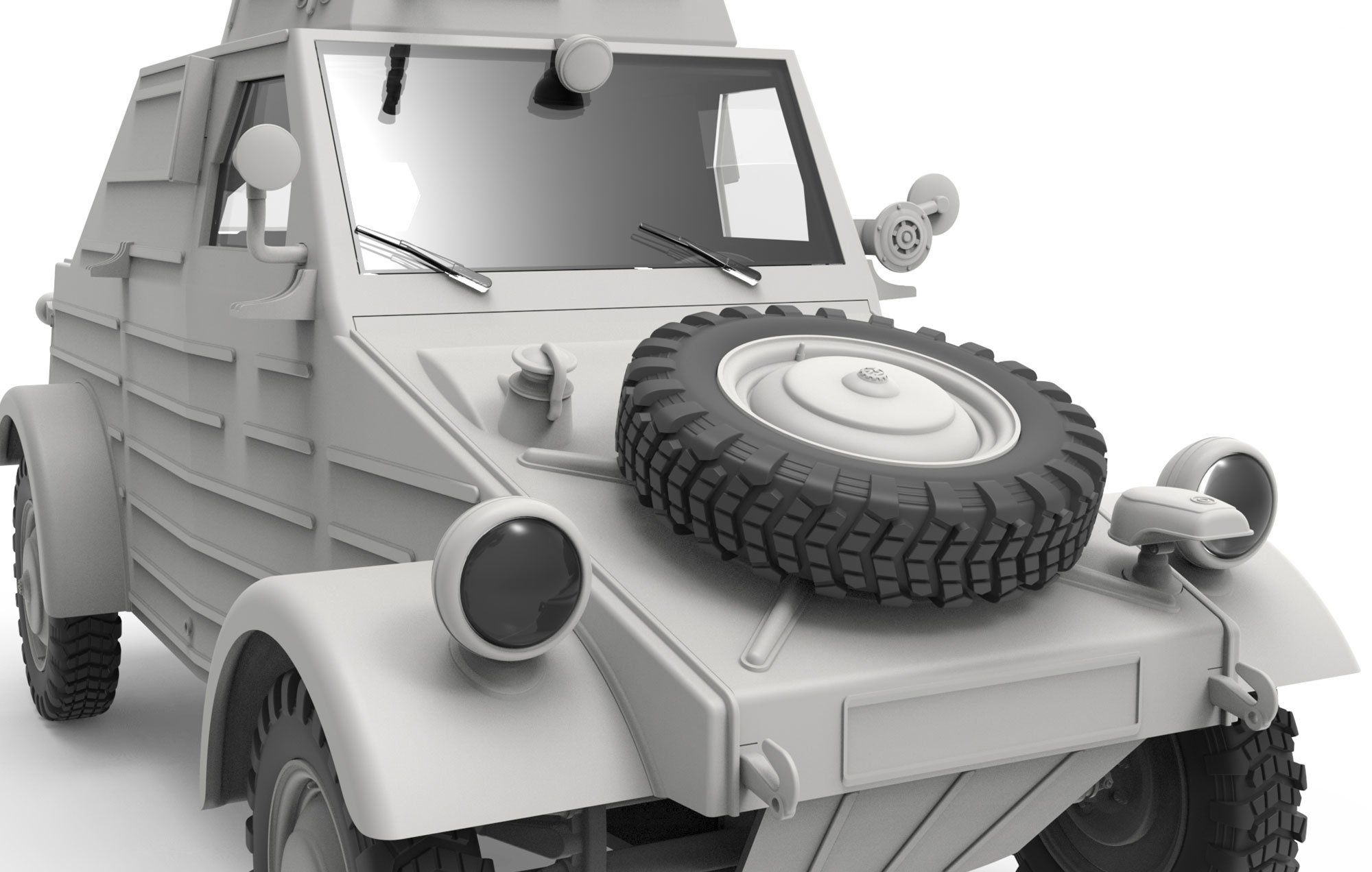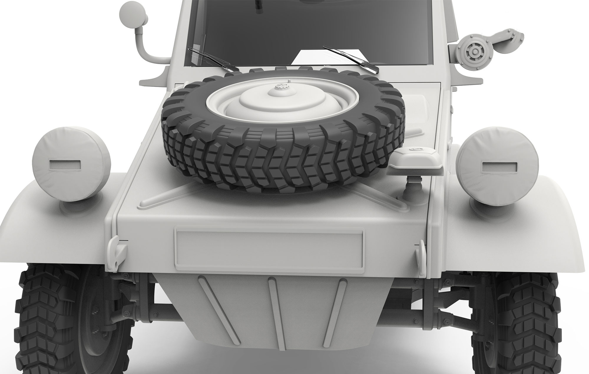 Meng’s new 1/35-scale model kit of the Kubelwagen Type 823 features an upper turret that can rotate; the lights and windshield are reproduced with clear parts. The chassis has a three-stage disassembly design, and the front axle reflects the structure of the actual vehicle. A spare tire is included, as are decals. Order yours today!