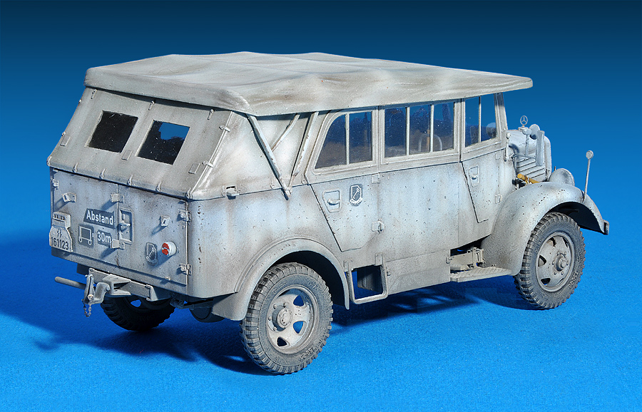 The Mercedes-Benz L 1500 was developed and produced in two variants: A and S. The first (L 1500 A) had an undeveloped rear part of the car and was most often used in the German armed forces under the designation Kfz.70 to transport soldiers – it was in able to carry up to 7 people. In this version, it was used on many fronts of World War II, including: on the Eastern Front in 1942-1945, in North Africa or in Italy in 1943-1945. The second version (L 1500 S) had a built-in rear part of the vehicle and was used as a classic truck or as a vehicle for specialized tasks – for example as a fire engine.