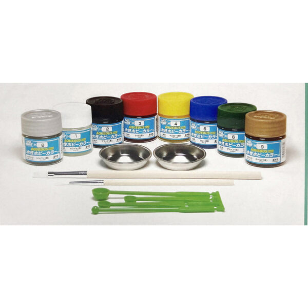 Mr Hobby Aqueous Basic Starter Set of 8 Paints Brushes and Tools HS30